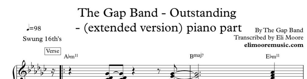 The Gap Band gave us some of the best post-disco grooves, and this is a fine piano part that's just so fun to play. The most recurring variations are all included - it's a good two-hander!